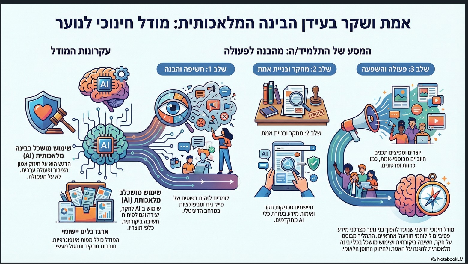 3. מודל אמת ושקר בעידן ה AI. מודל ייחודי שפיתח יקותיאל (קותי) בלוך, מהרב תחומי עמל רמות באר שבע, מודל שמסייע לציבור לשמור על הדמוקרטיה ועל האמת בעידן בדיגיטלי. המודל מחזק את יכולת הציבור לזהות שקרים ולהגיב במהירות ובכך בונה חברה מודעת וחסינה יותר. יחידת הלימוד המקורית שפיתח קותי, מסייעת למשתמש להבין את האופן שבו אלגוריתמים מייצרים מניפולציות ופייק ניוז, ומלמדת כיצ להגיב באופן ממוקד ואיכותי ולא ליפול בפח. איך זה קורה? היכנסו לכאן